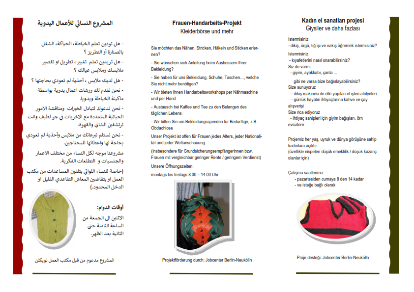 Dieses Projekt setzt im Integrationsprozess an zwei wesendlichen Punkten an:1.) Unser Projekt dient der Eingliederung arabischstämmiger Frauen/ Mütter in den gesellschaftlichen und arbeitsmarktlichen Prozess.2.) Die Mütter sind die ersten Lehrerinnen der Kinder, sie Vermitteln ihnen das ersten allgemeinbildenden und Integrationsnötige Wissen.